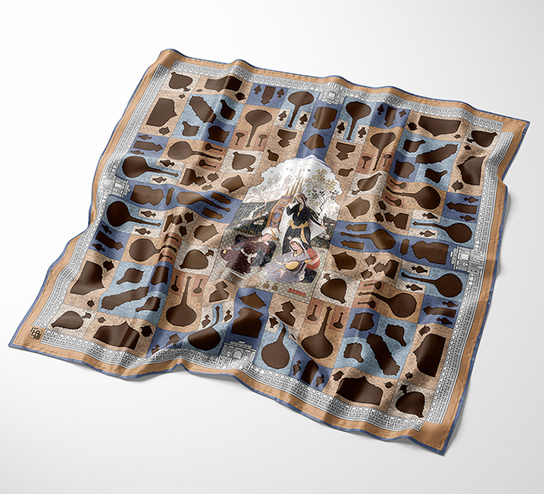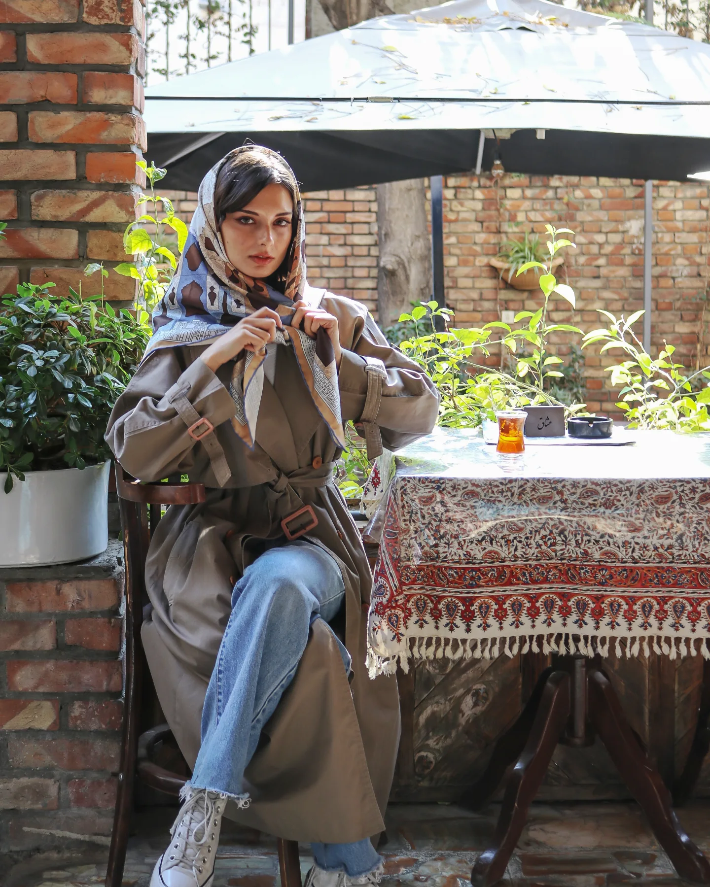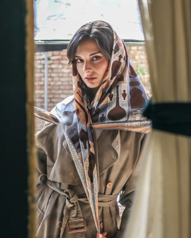 هر کدوم از طرح های کالکشن نوا، دریایی از جزییاته که میتونه جذابیتتون رو چندین برابر کنه! از طرفی، روسری هایی که جزئیات بالا دارن، معمولا با لباس های مختلفی ست میشن و دستتون رو باز میذارن تا نگران استایل کردنشون نباشین. توی طرح عالی قاپو، رنگ های نخودی و آبی غالبه که یادآور همنشینی آجر و کاشی در معماری ایرانیه و میتونه انتخاب خیلی خوبی باشه برای همراه شدن با لباس هایی که برای عید امسال به رنگ موکا یا نسکافه ای میکنید!