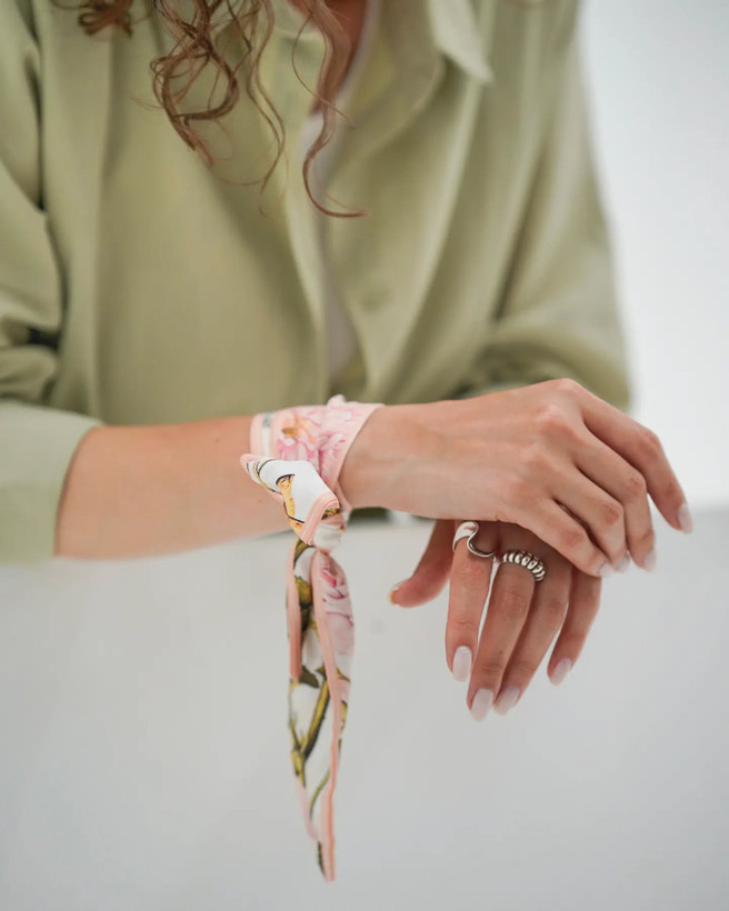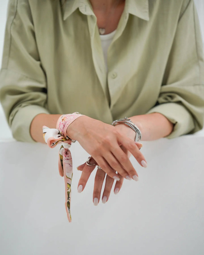 دستبند که همیشه فلزی نیست، گاهی یک دستبند ابریشمی میتونه قشنگ ترین اکسسوری بشه که رنگ و لعاب میده به استایل های ساده و یکنواخت! تازه میتونید با رینگ ها یا قلاب های فلزی همراهش کنید و حسابی خاص باشید!