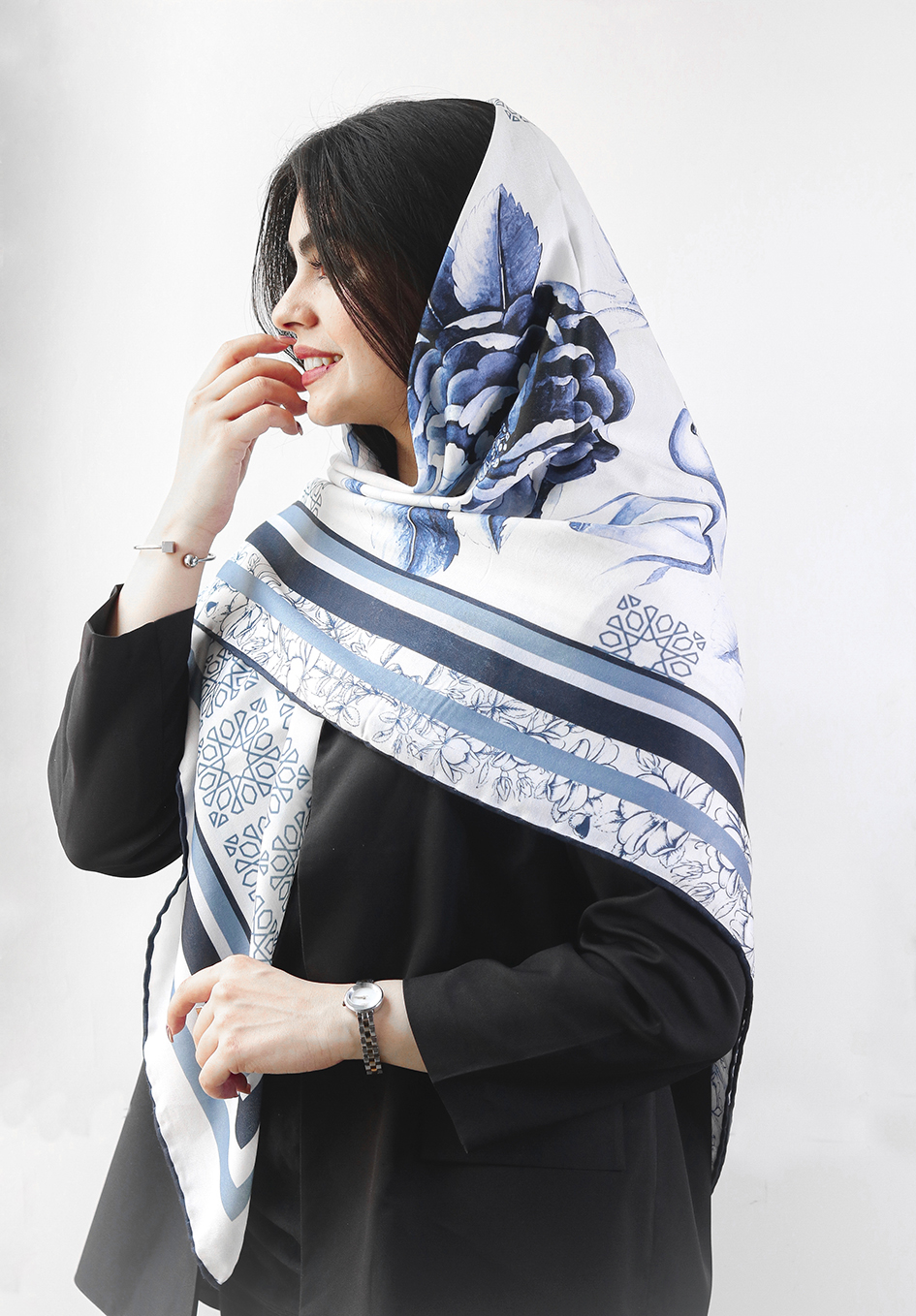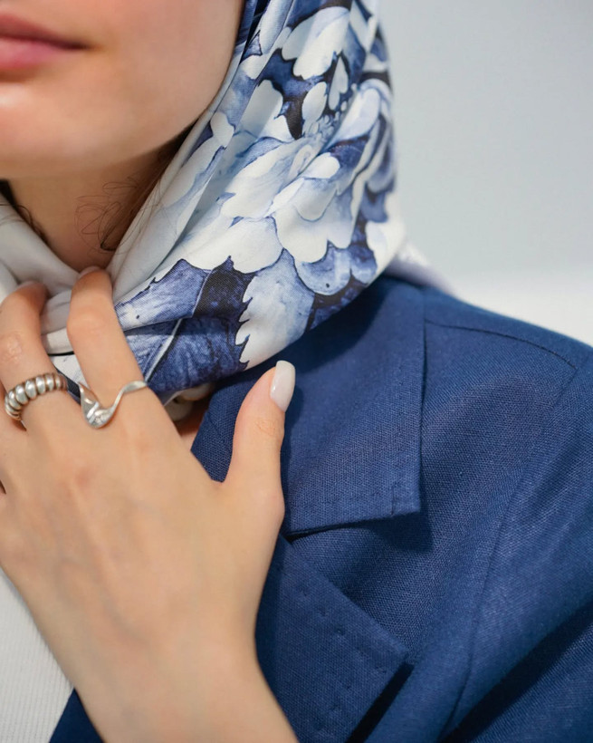 این طرح، اگر خاطره بود، میشد خاطره چینی های قلم آبی لوکسی که مامان وقتایی که مهمون ویژه داشت، از گنجه میاورد بیرون. اگر رایحه بود، میشد عطر خنکی که توی یه عصر گرم تابستونی زدی و رفتی به دیدن یه دوست قدیمی. اگر شعر بود، میشد «بی تو مهتاب شبی» فریدون مشیری. اگر کتاب بود، میشد دیوان حافظی که سر سفره یلدا و نوروز میاد. این طرح الان یه اسکارفه، یه روسری که وقتی به استایلت هدیه اش بدی، همه قشنگیا و لوکس بودنا و لطافت و تمایزی که ازش حرف زدم، اضافه میشه به تصویری که دیگران از تو توی ذهنشون دارن! پس شک نکن برای داشتنش