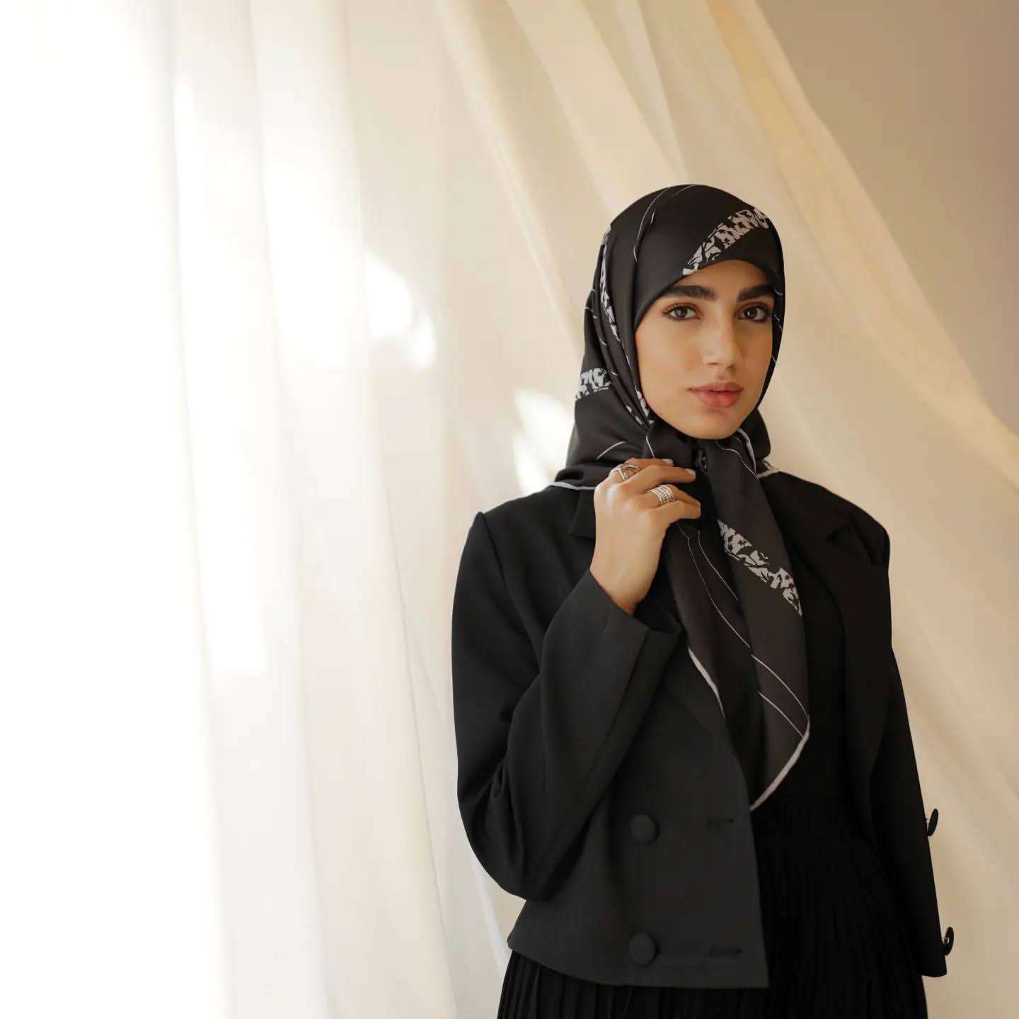 روسری مشکی از ضروری ترین و پرکاربردترین آیتم های کمد هر بانوی خوش سلیقه است، چون با همه استایل ها از روزمره تا رسمی قشنگ میشه. فقط یه مشکلی هست! اینکه روسری مشکی ها یا خیلی شلوغ و پر نقش هستن یا کاملا ساده و حد وسط ندارن! این روسری رو طراحی کردم تا یه روسری مشکی با نقش مینیمال و اصیل توی کمدت داشته باشی و راحت یه استایل شیک بزنی!